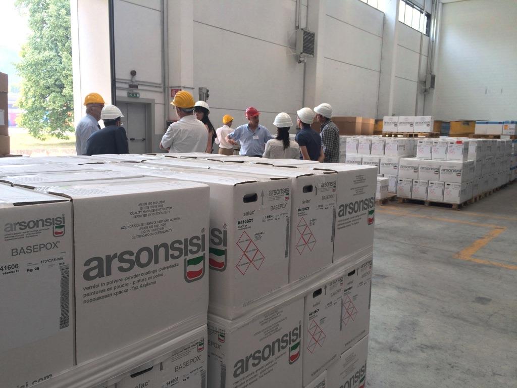 Katılanlar iki gruba ayrılarak Arsonsisi’nin Verbania tesisini gezmişlerdir. Bu gezi sırasında canlı olarak hammadde tedariğinden kalite konrol aşamasına kadar baştan sona toz boya üretim sürecini görüp anlama imkanını bulmuşlardır.