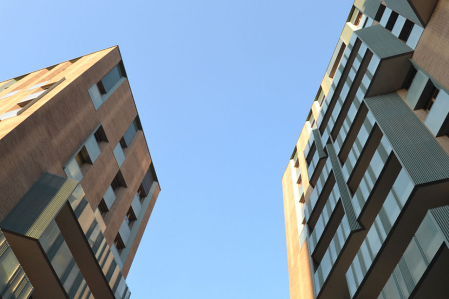 Cüsseleri ve mimari özellikleriyle benzersiz olan, 9 ve 13 katlı iki binanın yapımında kullanılan malzemeler, girişteki yeşil porfir plakalar, meşe ağacından ahşap işleri ve daha birçok detaydan görüldüğü gibi doğadan seçilmiştir. Binaların dış cepheleri de delikli ondüle saç, görünen tuğlalar, tabii taş ve kumlanmış cam gibi kişilikli malzemelerle sislenmiştir.